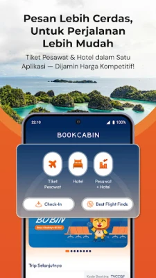 BookCabin by Lion Air Group memudahkan tempahan tiket pesawat dan hotel termurah. Rancang percutian keluarga, perjalanan bisnes atau staycation menarik dengan harga istimewa serta promosi eksklusif harian dalam satu aplikasi.
