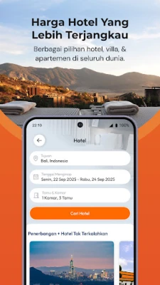 Rancang percutian impian tanpa perlu risau tentang bajet atau kerumitan? BookCabin adalah penyelesaian utama anda untuk menemukan tiket penerbangan dan penginapan terbaik. Jelajahi lebih dari 100,000 laluan domestik dan antarabangsa dengan tawaran dari maskapai terkemuka seperti Lion Air, Garuda Indonesia, AirAsia, dan banyak lagi. Dari hotel butik hingga resort mewah bintang 5, pilih dari 5,000+ jenis penginapan di Indonesia dan seluruh dunia. Manfaatkan fitur pencarian tanggal termurah serta promosi khusus untuk pelajar, keluarga, dan pengguna baru untuk memastikan setiap perjalanan bermula dengan penjimatan maksimum.
