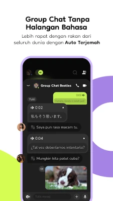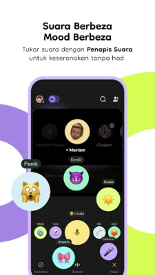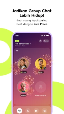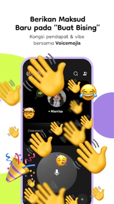 Tetapi buz lebih daripada sekadar pemesejan suara. Ajak rakan-rakan anda ke dalam Sembang Kumpulan yang penuh gelak tawa, di mana gurauan dan cerita dikongsi dengan lebih meriah melalui suara. Keajaiban buz turut menyertakan Terjemahan Segera, memecahkan halangan bahasa agar setiap ahli kumpulan memahami perbualan, tanpa mengira bahasa ibunda mereka. Tingkatkan lagi pengalaman bersosial dengan Live Place, ruang maya yang boleh anda sesuaikan sepenuhnya. Pilih warna tema, hiasi dengan gambar kegemaran, dan set mood dengan muzik latar untuk mencipta tempat lepak maya yang sempurna. Untuk sentuhan keseronokan tambahan, Penapis Suara membolehkan anda mengubah nada suara anda—menjadi garau, kebudak-budakan, atau pun menyeramkan—mengejutkan rakan dan mempamerkan kreativiti anda. Dan apabila anda ingin melihat mereka, Panggilan Video buz sedia menghubungkan anda secara langsung dengan satu ketikan.