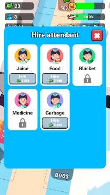 Cabin Crew Rush membolehkan anda menjadi kru kabin terbaik! Sediakan perkhidmatan cemerlang di dalam pesawat dengan menghidangkan makanan dan minuman. Latih pembantu baharu dan pastikan kabin sentiasa bersih dan kemas.