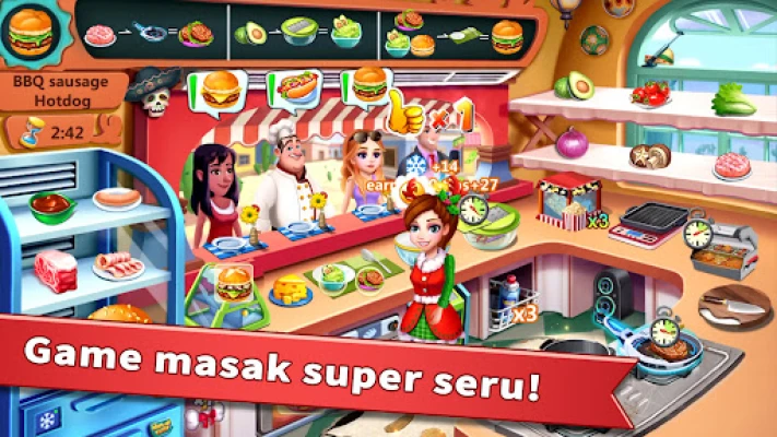 Mulakan pengembaraan kulinari yang memukau bersama Emma dalam Chef Hebat - Game Masak Restoran Gila! Setelah mengasah bakatnya di akademi masakan terkemuka, Emma kini bersedia mengukir namanya sendiri dalam dunia gastronomi. Namun, jalan menuju kemasyhuran tidak mudah tanpa bimbingan seorang mentor hebat seperti Ramsey. Adakah anda bersedia menghadapi hiruk-pikuk dapur, menguruskan kedai burger yang sibuk, atau mengendalikan truk makanan yang bergerak pantas di seluruh dunia? Setiap detik berharga; hidangkan pelanggan yang tidak sabar sebelum makanan kehilangan kesegarannya. Uji kemahiran manajemen waktu anda dan buktikan diri sebagai seorang ahli masakan yang sejati!