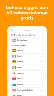 Mulakan perjalanan menarik anda untuk menguasai bahasa baharu dengan Duolingo, aplikasi pembelajaran yang direka pakar dan digemari oleh jutaan individu di seluruh dunia. Sama ada anda berhasrat untuk mengembara ke serata dunia, memperkukuh kerjaya, membantu pelajaran, atau sekadar ingin mencabar minda, Duolingo menawarkan pengalaman yang lancar dan berkesan. Selami dunia percakapan harian dalam bahasa Sepanyol, Perancis, Mandarin, Itali, Jerman, Inggeris, dan pelbagai lagi, semuanya direka untuk anda capai potensi bahasa tertinggi.
