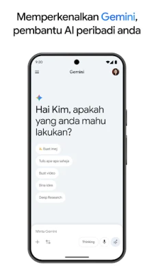 Temui Gemini, rakan AI revolusioner yang membawa kecerdasan buatan termaju Google terus ke peranti mudah alih anda. Ia direka untuk meningkatkan produktiviti dan mencetuskan kreativiti anda dalam pelbagai aspek kehidupan harian. Dengan Gemini Live, anda boleh berbual secara langsung dengan Gemini mengenai apa sahaja yang anda lihat melalui kamera atau skrin, memudahkan sesi sumbang saran, meringkaskan subjek kompleks, atau mempersiapkan diri untuk momen penting. Selain itu, mendalami ilmu dengan cara yang lebih interaktif melalui pembuatan kuiz dan kad imbas, visual dinamik, serta contoh dunia sebenar yang relevan.