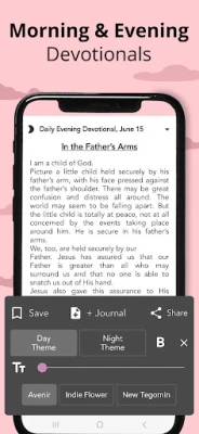**Christian meditation App** turut menawarkan pengalaman membaca Alkitab harian secara percuma, dengan keupayaan penyesuaian seperti sorotan, nota peribadi, dan pilihan fon serta mod bacaan yang selesa. Anda boleh mencipta ayat Alkitab yang boleh dikongsi dan merenungi Firman Tuhan secara mendalam, termasuk versi popular seperti KJV dan NIV. Untuk melengkapkan perjalanan spiritual anda, Jurnal Kristian tersedia untuk mencatat refleksi, pengakuan, dan wahyu anda, menjadikannya testimoni nyata tentang pekerjaan Tuhan dalam hidup anda. Sama ada anda mencari deklarasi, renungan, doa, alat kajian Alkitab yang andal, atau ruang untuk merakamkan wawasan rohani, aplikasi ini adalah sumber utama anda yang serba lengkap.