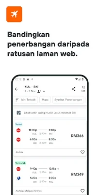 Merancang perjalanan impian kini lebih mudah dengan KAYAK. Aplikasi pintar ini mengubah cara anda mencari, membanding, dan menempah penerbangan, penginapan, serta sewaan kereta dari ratusan sumber yang berbeza, semuanya di satu tempat yang kemas. Ucapkan selamat tinggal kepada tab pelayar yang berselerak dan hello kepada kemudahan pencarian yang komprehensif, membolehkan anda menemui tawaran terbaik yang disesuaikan dengan keperluan perjalanan anda, sekali gus menjimatkan masa dan wang berharga anda.