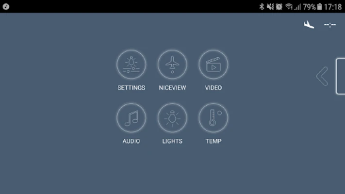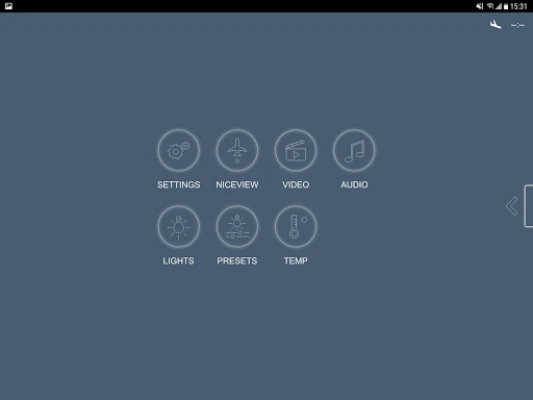 Aplikasi nice Cabin Control menyediakan antara muka kawalan jauh yang mudah dan intuitif untuk kabin pesawat anda. Kawal semua aspek persekitaran kabin jet perniagaan terus dari peranti Android pilihan anda melalui LAN Wayarles dalam pesawat, dari tempat duduk atau mana-mana sahaja dalam kabin.