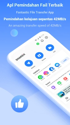 SHAREit: Pindah & Kongsi Fail adalah aplikasi pantas, selamat untuk memindah dan berkongsi pelbagai jenis fail, dari aplikasi hingga video dan gambar. Dipercayai lebih 2 bilion pengguna, SHAREit juga membantu pengurusan fail dan kloning telefon. Mudah digunakan dan percuma!