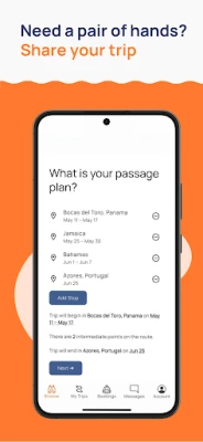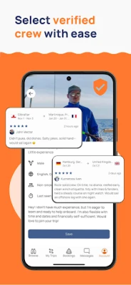 Sebagai pengorganisir pelayaran, anda boleh berkongsi perancangan perjalanan anda dalam beberapa minit sahaja. Manfaatkan peluang untuk mengurangkan perbelanjaan perjalanan seperti makanan, bahan api, dan yuran marina dengan berkongsi kos secara telus dengan kru anda. Sistem kami menawarkan pendedahan segera kepada komuniti lebih 20,000 pencari kru di seluruh dunia. Lebih penting lagi, anda boleh yakin dengan kualiti kru yang berpotensi; setiap profil disertakan dengan pengesahan identiti dan maklumat terperinci seperti pengalaman, umur, dan pilihan peribadi, memastikan keserasian pelayaran yang optimum.